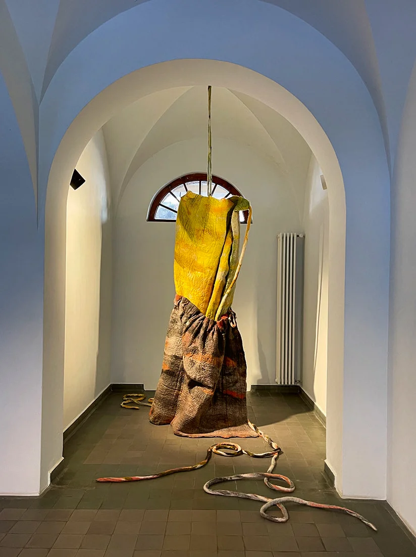 Ende Februar scheint in Nairs nach zwei Monaten Dunkelheit endlich wieder die Sonne. Sie lässt die weiche Schneedecke glitzern. Bleibt es weiterhin so warm, wird sie bald geschmolzen sein. Zwei junge Männer stellen Gartenstühle im Park des Hotels «Scuol Palace» auf. Nach der langen Enthaltsamkeit soll kein Strahl der Wintersonne verloren gehen. An zwei Buchen hängen bunte Beutel aus Filz, die an Rückentragkörbe erinnern. Die Künstlerin Stefanie Salzmann hat sie dort aufgehängt.